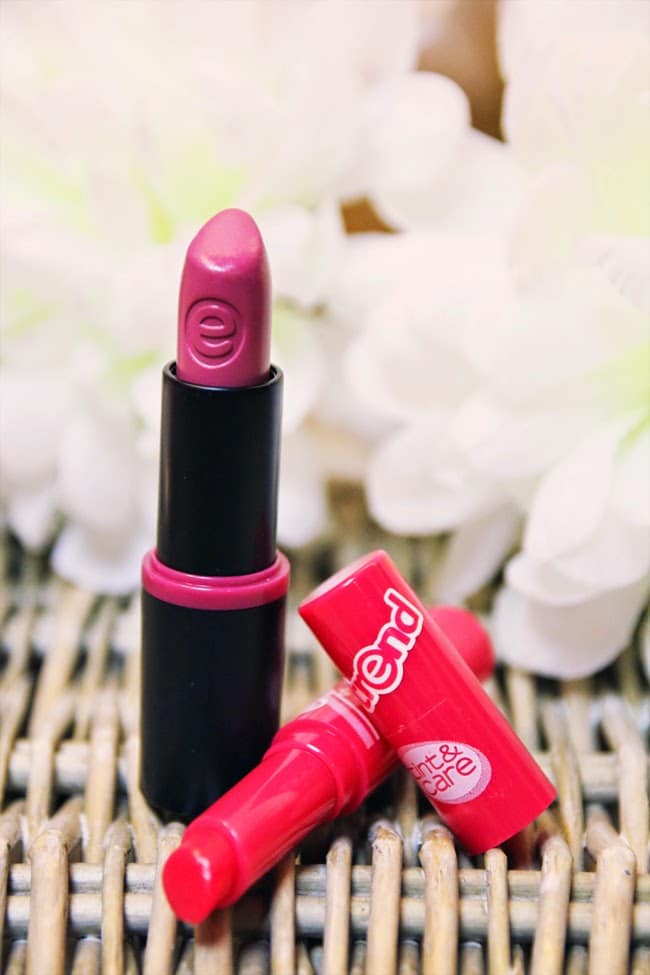 essence // Lippenstift 09 Wear berries: Schon seit Monaten mein Dauerfavorit. Für mich ist dieses pinklila die perfekte Alltagslippenfarbe. Generell mag ich die Essence-Lippenstifte aus dieser Reihe und habe noch 4 oder 5 andere, die ich ebenfalls ganz gerne trage.