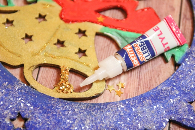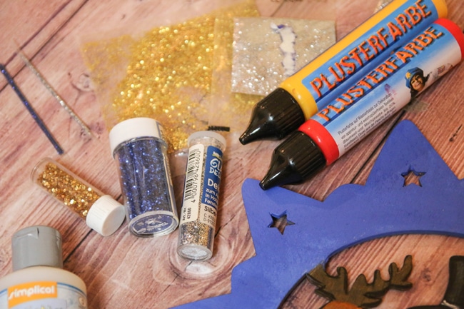 – Dekomaterial wie Schnee, Glitzer, Strass, Pailletten, etc.