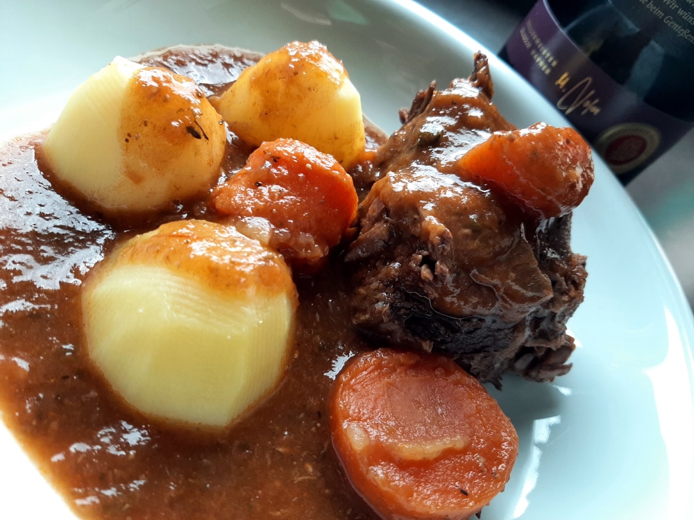 Schmorbraten, im amerikanischen auch Pot Roast genannt. Er köchelt