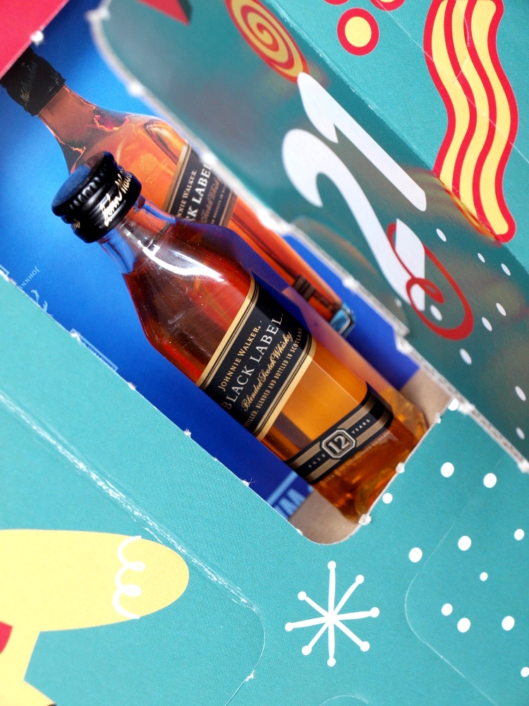 kleines Fläschen Whisky in dem Degustabox-Adventskalender findet und