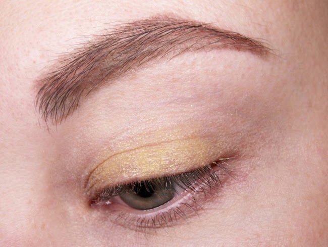 Als Highlight nutze ich immer wieder gerne den hellsten Ton aus dem wet´n´wild Trio „walking on eggshells“, der MACs „Shroom“ sehr nahe kommt. Diese Farbe ist nicht zu grell und nicht zu schimmernd und eignet sich daher wunderbar als softes Brauenbogen-Highlight. Und da bei mir ohne meinem geliebten Lidstrich (fast) nichts geht, durfte Revlons ColorStay Liquid Eye Pen in „blackest black“ noch ran! Die Wimpern habe ich mit der Mega effects Mascara* von Avon betont und zu guter Letzt mit einem angefeuchteten Pinsel noch einen schimmernden Effekt mit „golden Aura“ von Pure Luxe auf die Lidmitte gesetzt. Dieses lose Pigment wirkt in der Packung unscheinbar, angefeuchtet ist es aber der strahlendste metallic-gold-Ton, den ich kenne.
